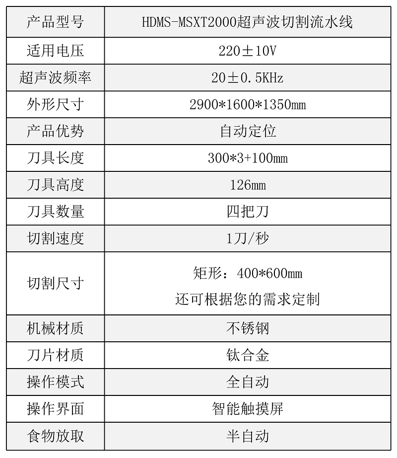 該設(shè)備配備雙把超聲波刀片,既可切方蛋糕,也可同時切兩個圓蛋糕,還具有自動上水洗刀、安全光柵的人性化功能,效率高,更方便 |